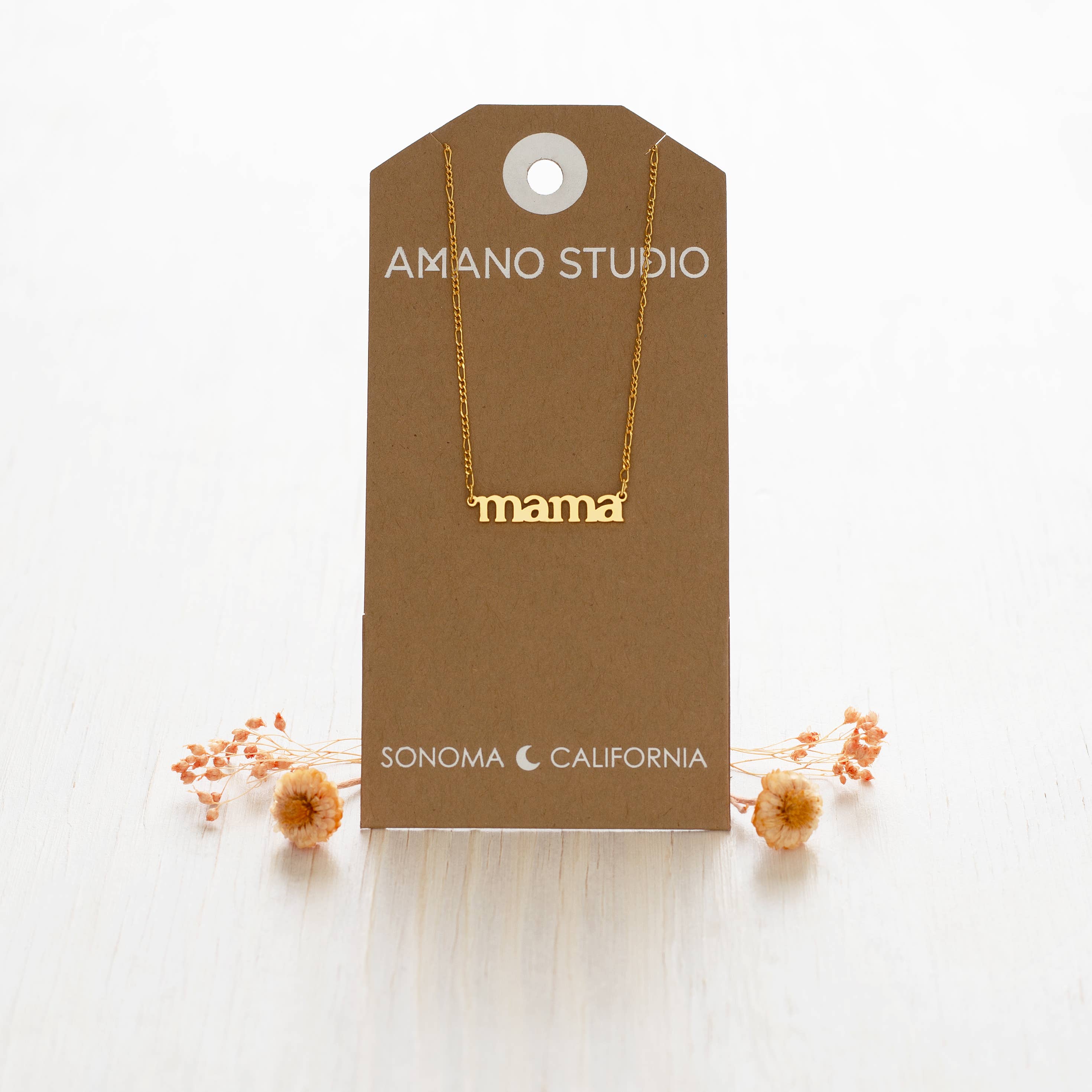 The perfect Mother's Day gift or for anyone wanting to show some Mama pride. 18" figero chain. Made of 14k gold plated brass + plated to resist tarnish. Designed and assembled in our Sonoma California studio.