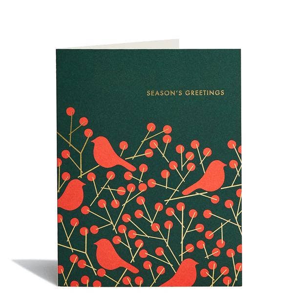 Bright pops of gold foil stamping compliment rich full color. The interior of this card is blank leaving ample room for personalized holiday wishes. Cards measure 5.5 x 4.25 inches. Available to purchase in boxes of 8 or individually.