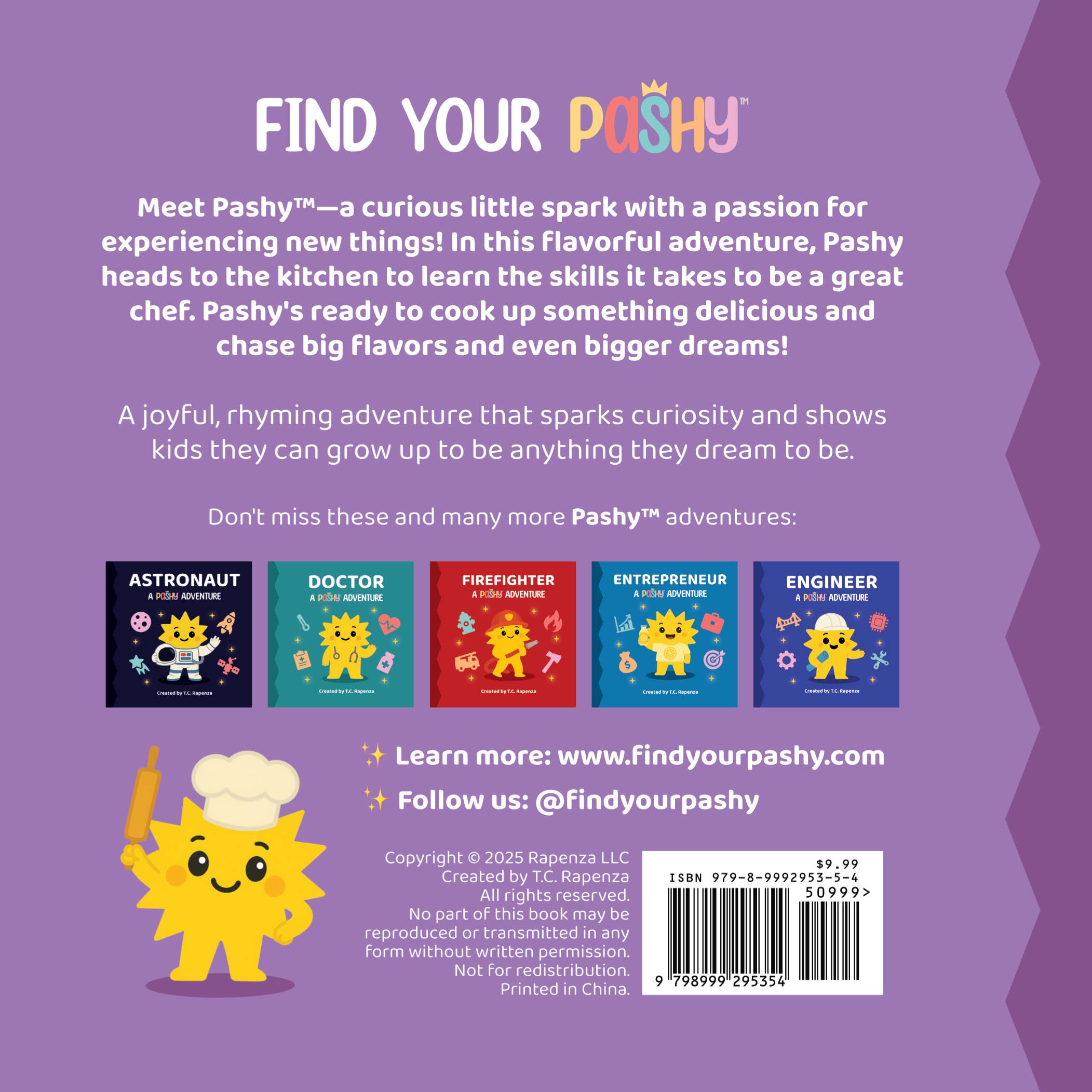 In this flavorful adventure, Pashy heads to the kitchen to learn the skills it takes to be a great chef. Pashy's ready to cook up something delicious and chase big flavors and even bigger dreams! A joyful, rhyming adventure that sparks curiosity and shows kids they can grow up to be anything they dream to be.