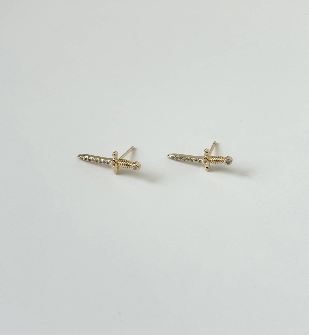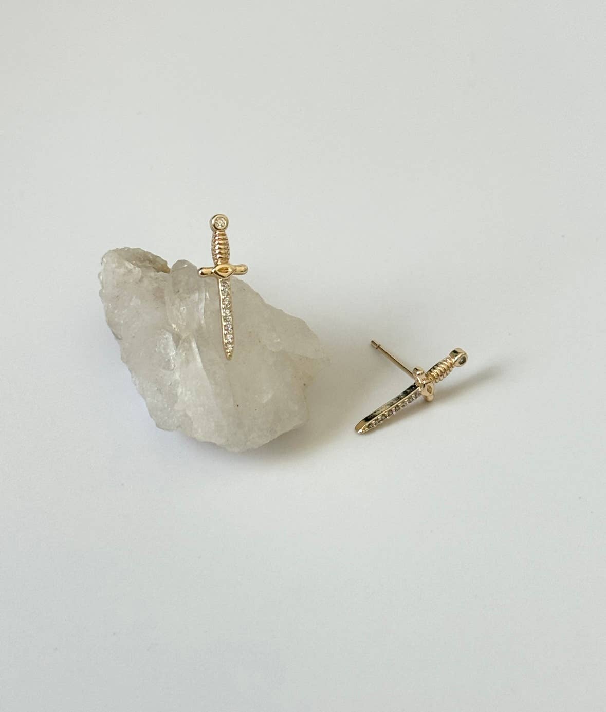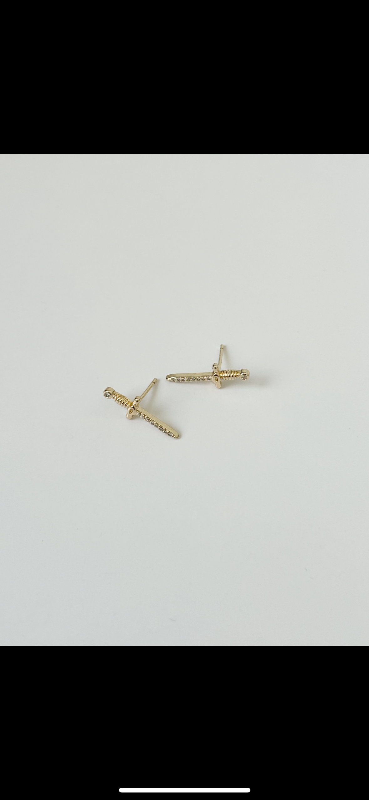 High quality real gold plated brass earrings embedded with clear cubic zirconia paved