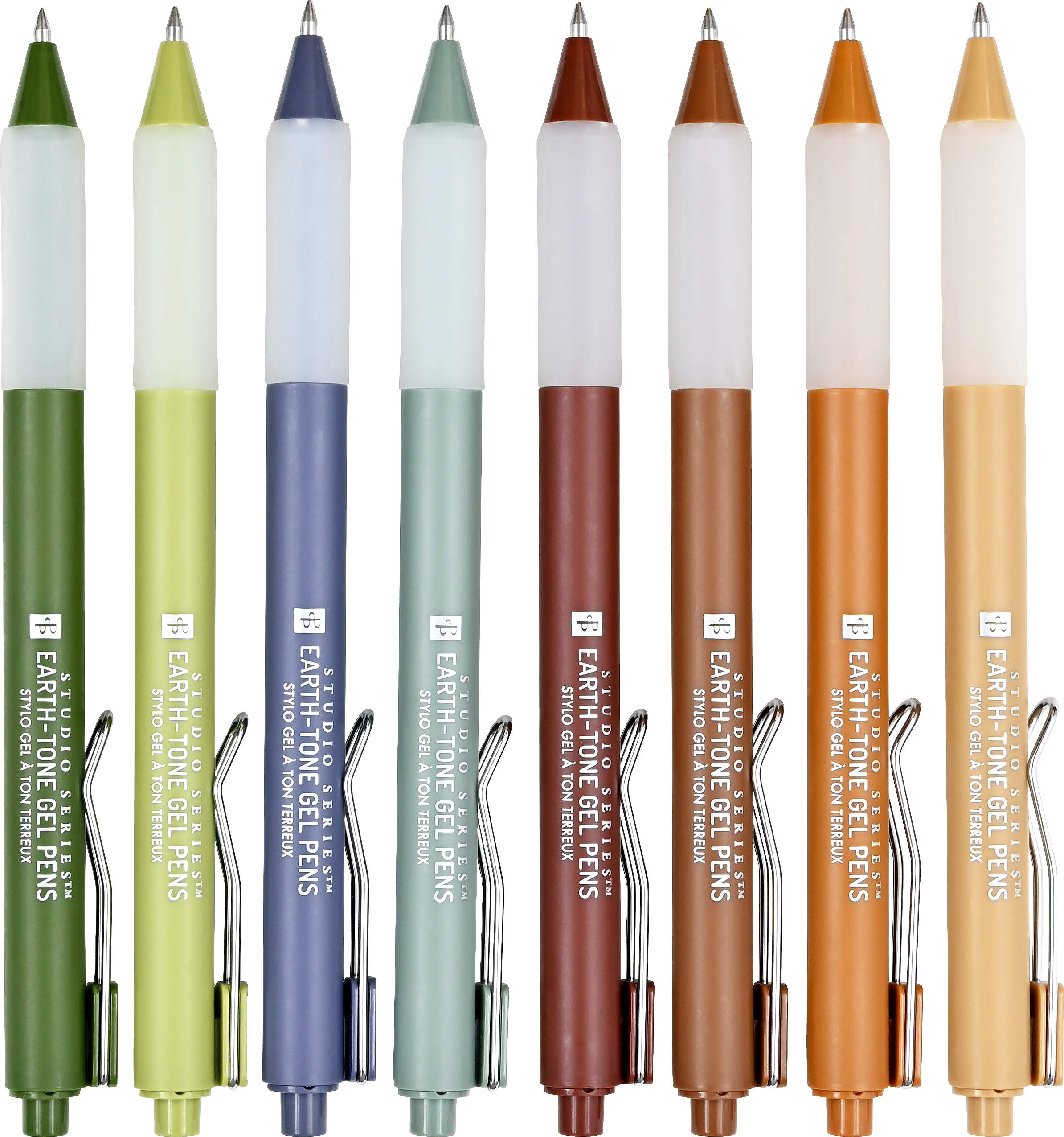 Quick-drying fine-tip gel pens with expressive earth-tone colors provide a seamless flow of ink for a flawless writing experience! Retractable gel pens are perfect for intricate journaling, drawing, planning, and more! Ultra-fine 0.5 mm tips for precision writing. Smudge-free. No bleed-through. Choose from a palette of 8 earth tones to bring a touch of nature to all your writing projects. Perfect for sketching, note-taking, and correspondence. 8 earth-tone colors feature greens, blues, and browns. User-friendly retractable design. Effortless writing with quick-drying ink. Ergonomic rubber grip for comfort. Durable clip provides secure attachment. Reusable case safeguards pens when not in use. Case measures 6'' wide x 7-3/4'' high. For home, school, and office!