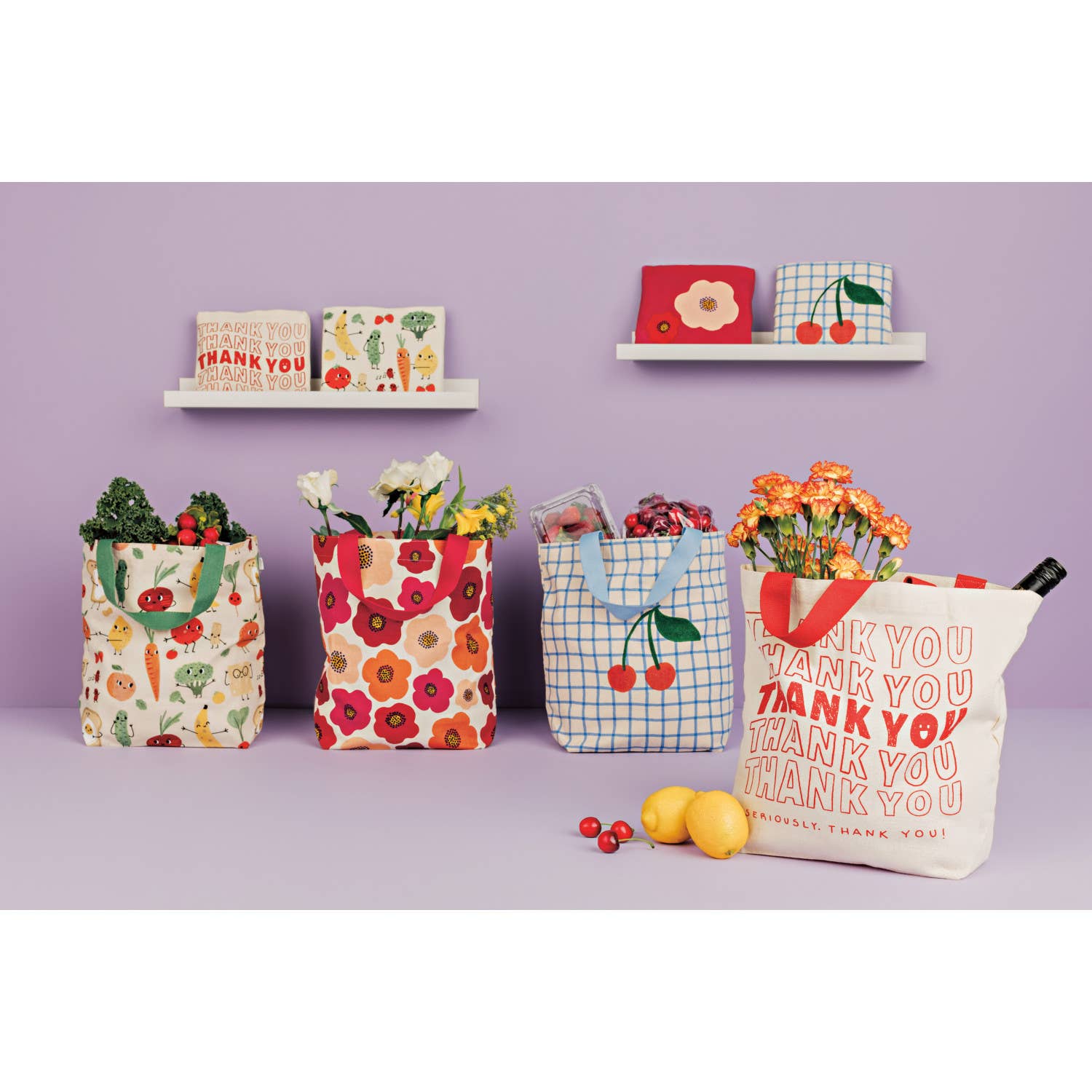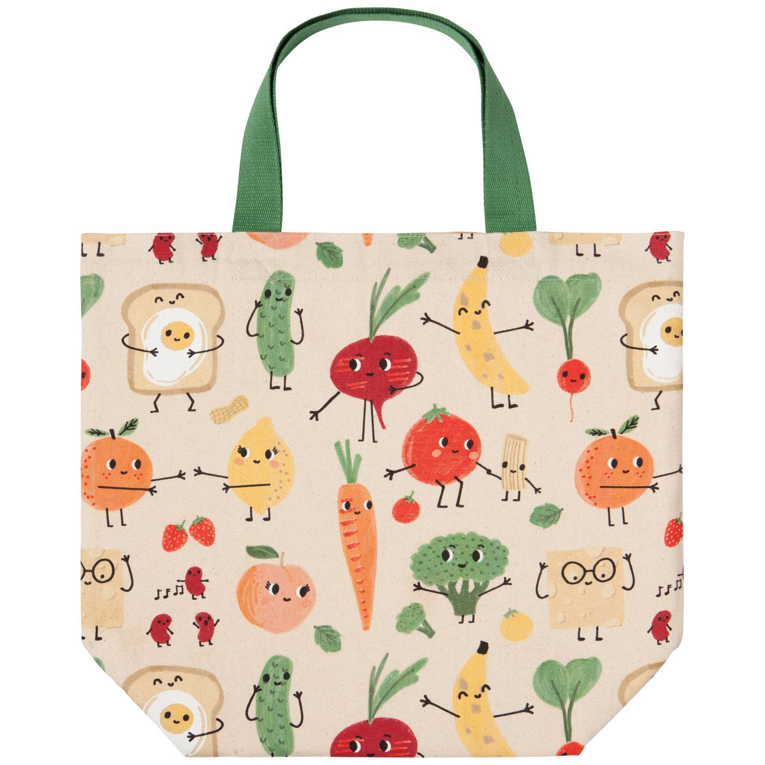Squeeze the day and get egg-cited about the Funny Food Pocket tote. This compact tote is reimagined in lightweight cotton canvas and ready to be used in a jiffy. Perfectly sized for quick grocery runs or other daily errands, it folds easily into an inner pocket. This pattern of quirky fruits and veggies will make you feel berry good!