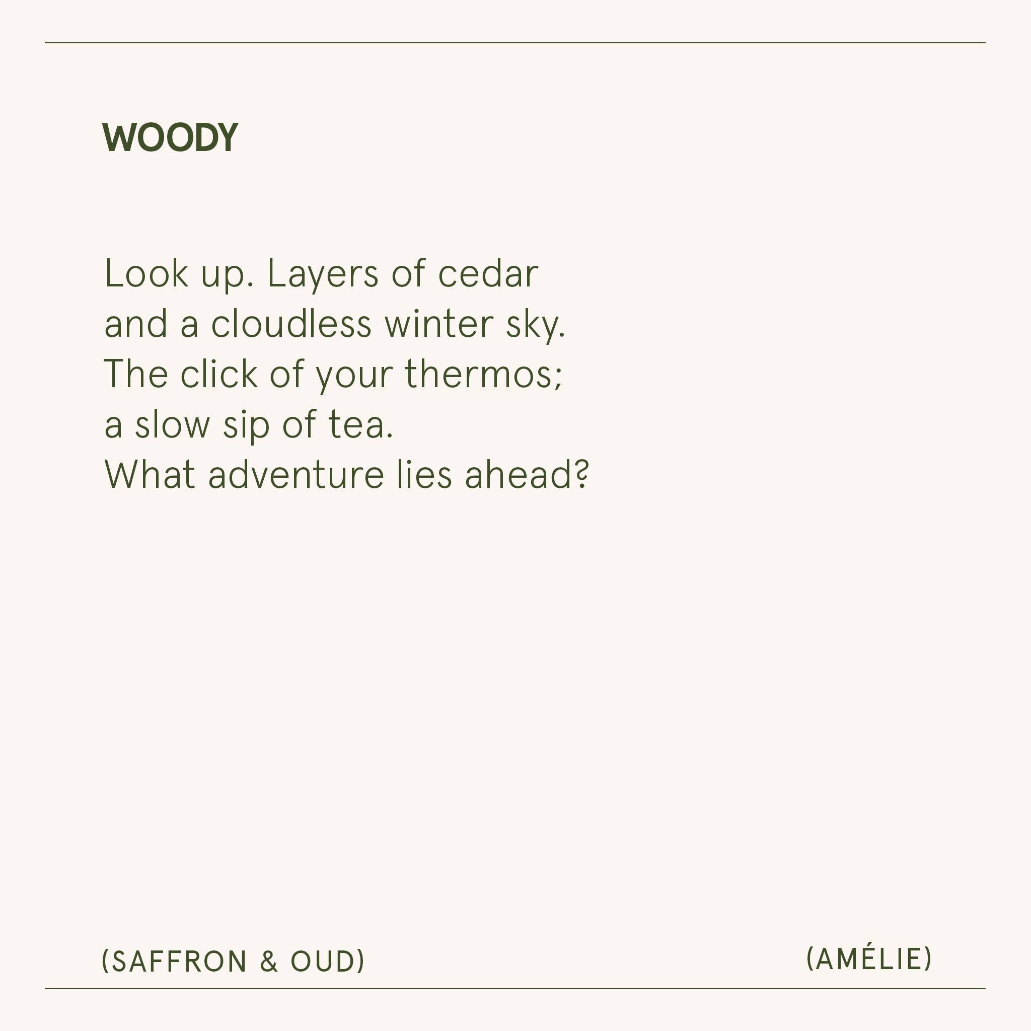 Inspired by warm notes of precious amber, this candle blends perfectly with soft, honey-like saffron and fresh cedar to create an exotic yet cozy ambiance.