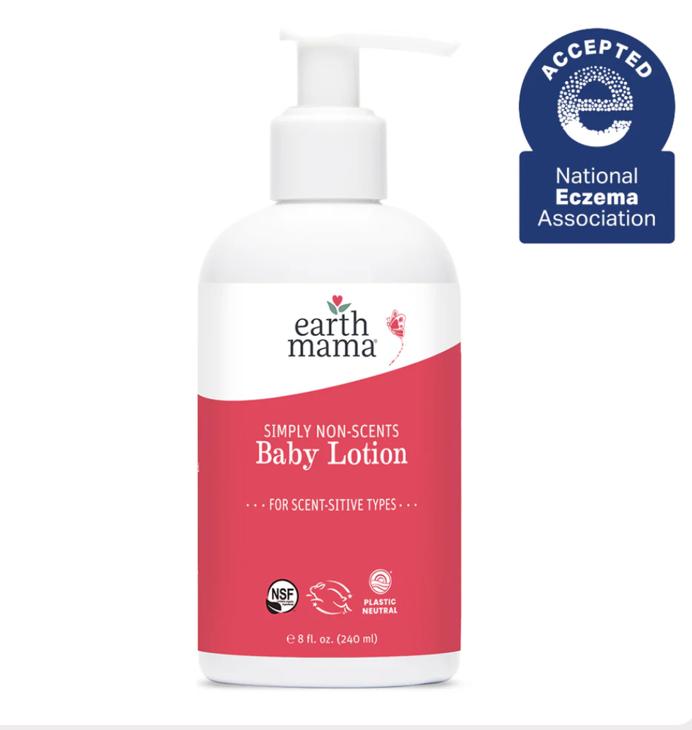 With Earth Mama, you can never be too sensitive! That’s why they made Earth Mama’s Simply Non-Scents Baby Lotion, a truly unscented lotion that’s perfectly formulated for sensitive skin. Awarded the Seal of Acceptance™ by the National Eczema Association for passing the association’s rigid standards, this rich, silky gentle baby lotion contains organic calendula, and rooibos, along with organic oils to moisturize skin of all ages.