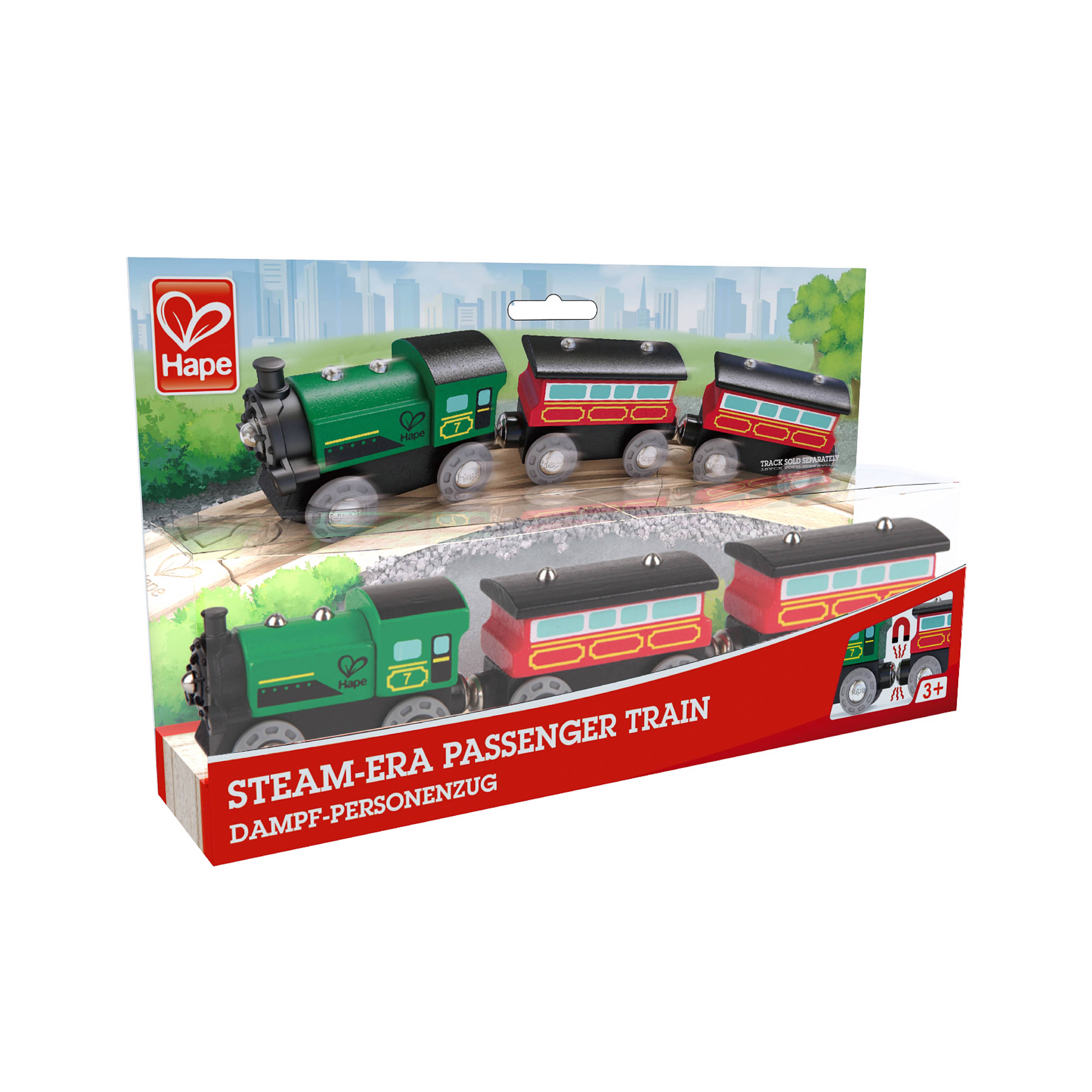 It's morning and time for everyone to get to work! Push your steam-era locomotive and its bright red carriages down the track to make sure everybody gets to the office on time!