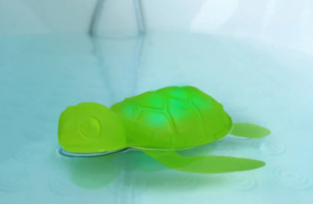 A radiant reptile. Add a splash of color with this turtle-y awesome bath toy! This Tub Turtle lights up when it contacts water, casting a vibrant rainbow of hues. Whether in a bath, pool, or water table, this toy is perfect for setting a serene or playful atmosphere. Made of BPA-free silicone. Tub Turtle contains a non-replaceable coin cell battery that lasts approximately 40 hours when lit. The battery and LED bulbs are sealed inside for safety. Tub Turtle automatically turns off when out of water.